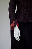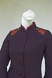 Áo bông lien đen lót đỏ thêu hoa cúc đỏ
