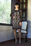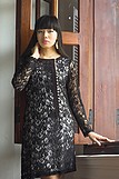 Váy ren đen lót ngi bạc cố lêch cài cúc