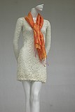 Váy ren màu trắng, tay dài, cổ tròn