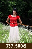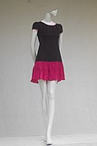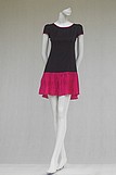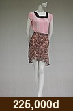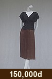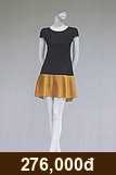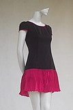 Váy đen cổ tròn viền, tay bồng, chân xếp ly lụa hồng