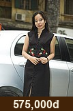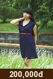 Váy lụa cát đen xếp ly, cổ tròn, cài cúc