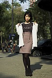 Váy dạ lông chuột, thân trên ren đen lót ghi