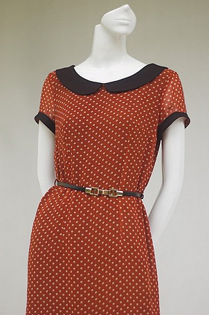 Váy chifon xuông đỏ chấm ...