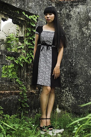 Váy cotton đen lé kem pha ...