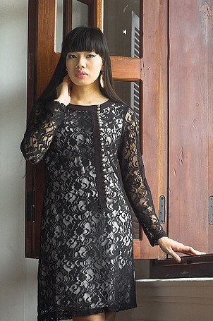 Váy ren đen lót ngi bạc cố ...