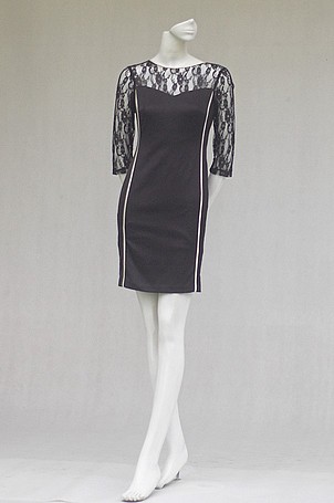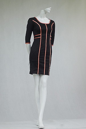 Váy đen cổ tròn viền, tay ...