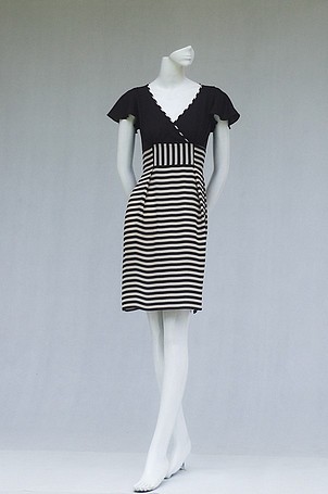 Váy ôm kẻ trắng đen pha đen