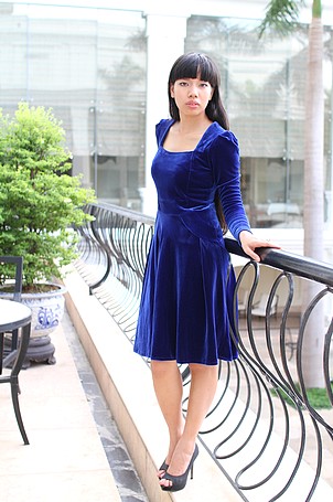 Váy nhung xanh xòe tay bồng ...