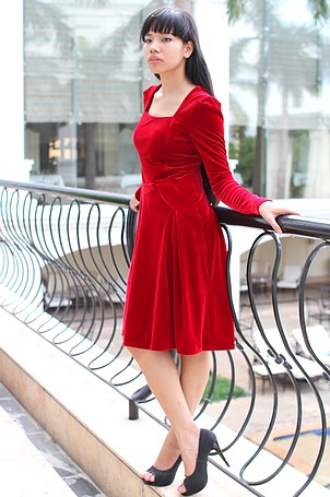 Váy nhung đỏ xòe tay bồng ...