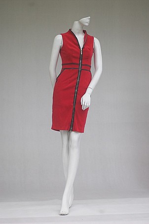 Váy da lộn đỏ khóa lé da,túi ...
